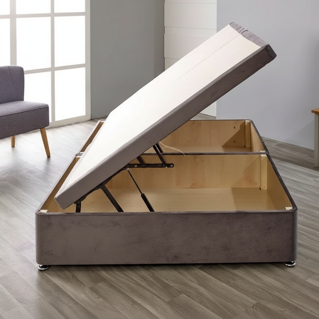 A Side Ottoman bed is a stylish and practical solution for maximising bedroom storage without sacrificing comfort or aesthetics. The base of the bed features a convenient lift mechanism that opens from the side, revealing ample storage space beneath the mattress. This design is perfect for smaller rooms or for keeping your belongings neatly tucked away. With its smooth operation and robust build, the side ottoman combines functionality with elegance, making it an ideal choice for modern living.